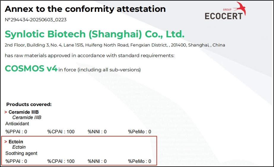 Недавно Yikeduoyin производства Shanghai Yunluo получил натуральный сертификат ЕС COSMOS, выданный ECOCERT во Франции.