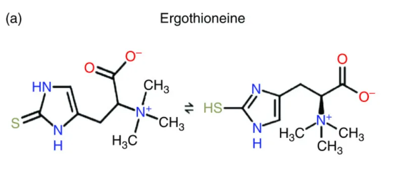 Эрготионеин (EGT) представляет собой встречающуюся в природе аминокислоту, которая существует как в тиоловой, так и в тионной формах изомерных структур. Изомер тиона преобладает при физиологическом pH, что придает эрготионеину исключительно сильные антиоксидантные свойства.